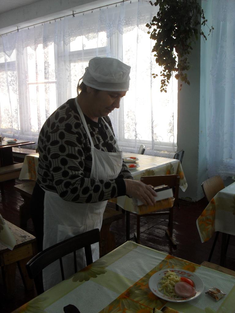 В школьной столовой организовано дежурство, как педагогов, так и учащихся. Возраст детей принимающих участие в дежурстве 13-17 лет. Каждый день дежурные 10 класса накрывают столы для учащихся начальной школы, а учащиеся 8,9 и 11 классов накрывают столы для себя и среднего звена. Дежурный учитель находится в столовой во время накрытия и во время перемен.
