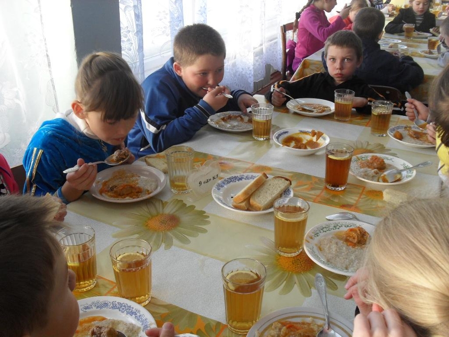 В 2011-2012 учебном году из 267 школьников 146 учащихся питаются бесплатно, что составляет 55%, основанием является документ из Центра социальной помощи семье и детям «Доброта», подтверждающий статус малообеспеченной семьи. 121 ученик питается за родительскую плату, что составляет 45 %. Охват двухразовым питанием в этом году - 13%.