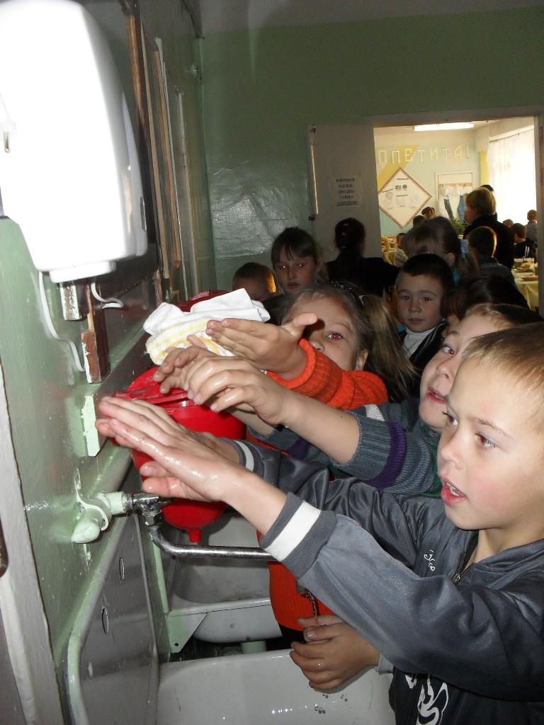 Для воспитания культуры питания школьников уделяется внимание не только рациону питания, но и сервировке стола, культуре поведения за обеденным столом. Для этого мы используем посуду с эстетическим оформлением, подстановочные салфетки, сервируем стол в соответствии с правилами этикета. Оформили обеденный зал наглядными плакатами, которые призывают соблюдать правила личной гигиены и поведения за столом. Администрация школы обеспечивает наличие мыла в умывальниках. Рядом с умывальниками установлены электрополотенца.